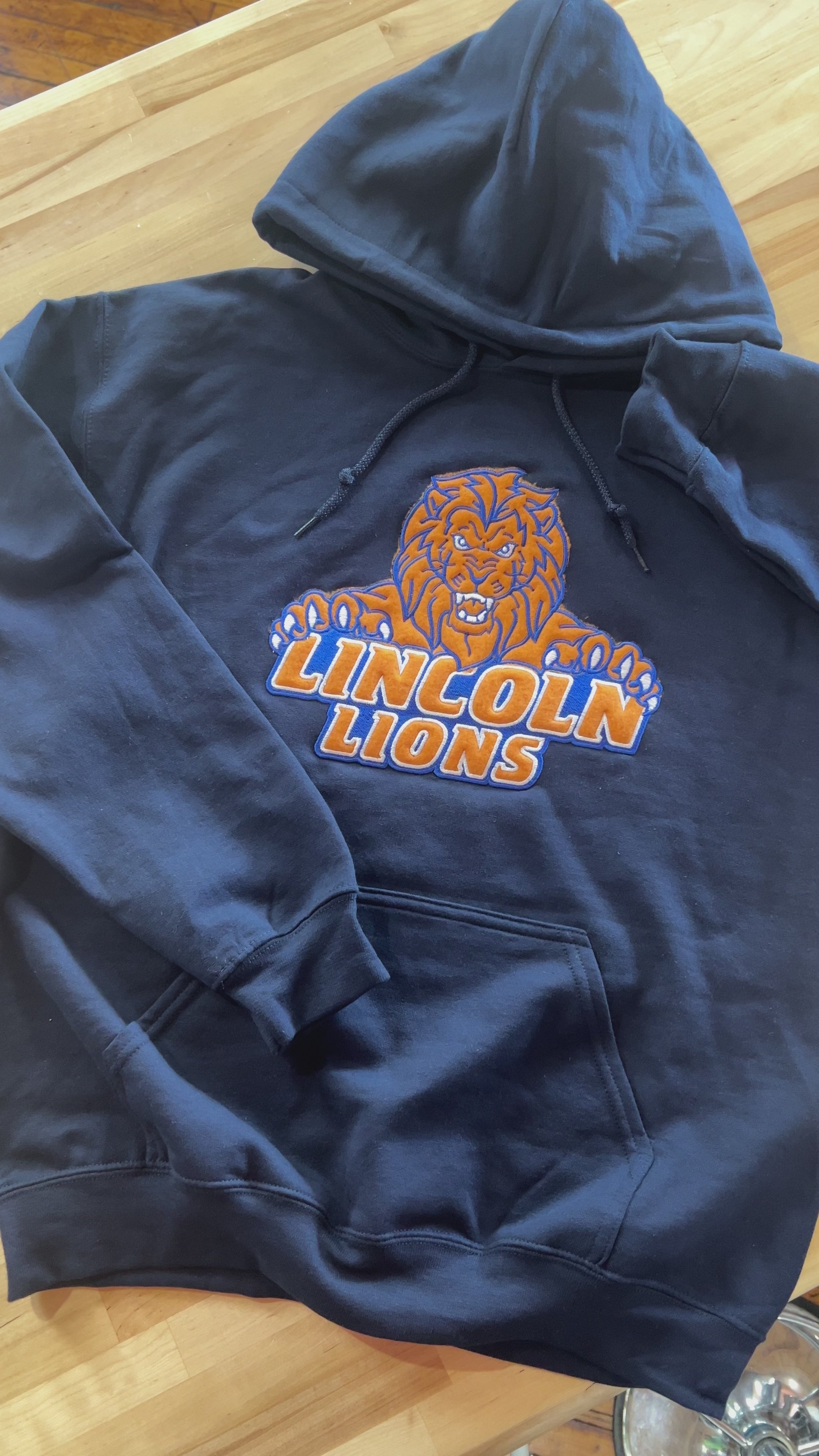 Hooded sweater with Lincoln Lions Embroidery Design on front chest. Stay warm while looking amazing and stylish in your Lincoln University Hoodie from our HBCU Collection.